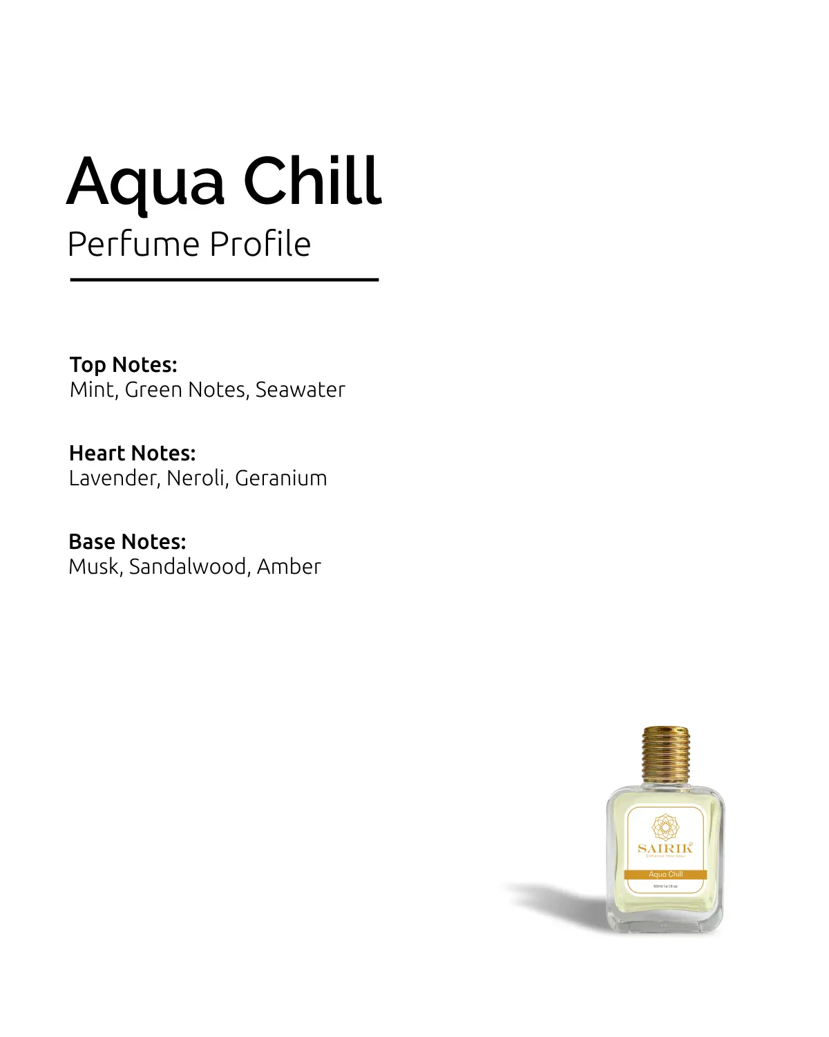 Product Overview: Inspired By Cool Water, Aqua Chill Is A Refreshing Aquatic Scent That Opens With Crisp Mint And Seawater, Flows Into A Heart Of Lavender And Neroli, And Settles Into A Clean Base Of Musk And Sandalwood.
