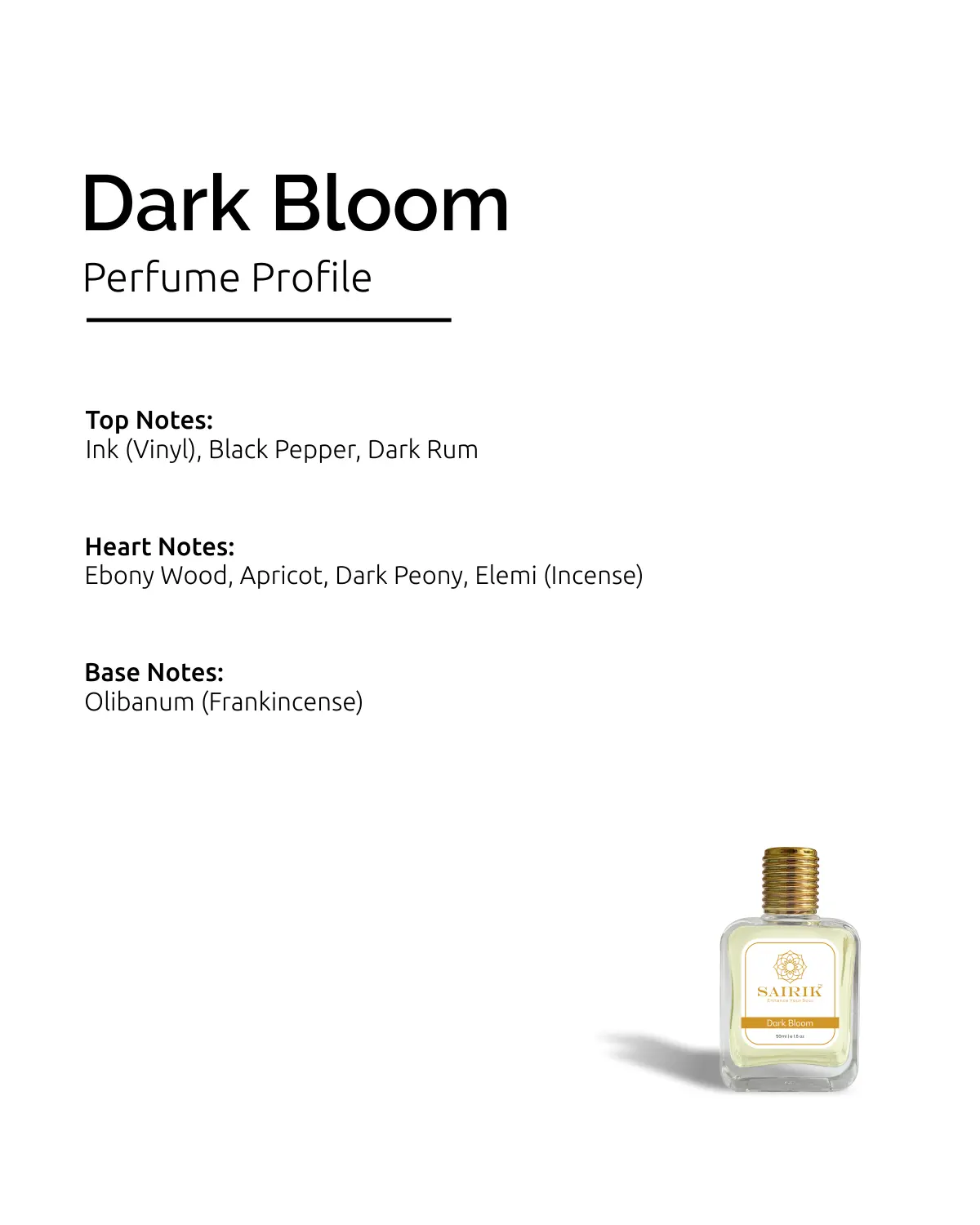 - Heart: Ebony Wood, Apricot, Dark Peony, Elemi (incense)