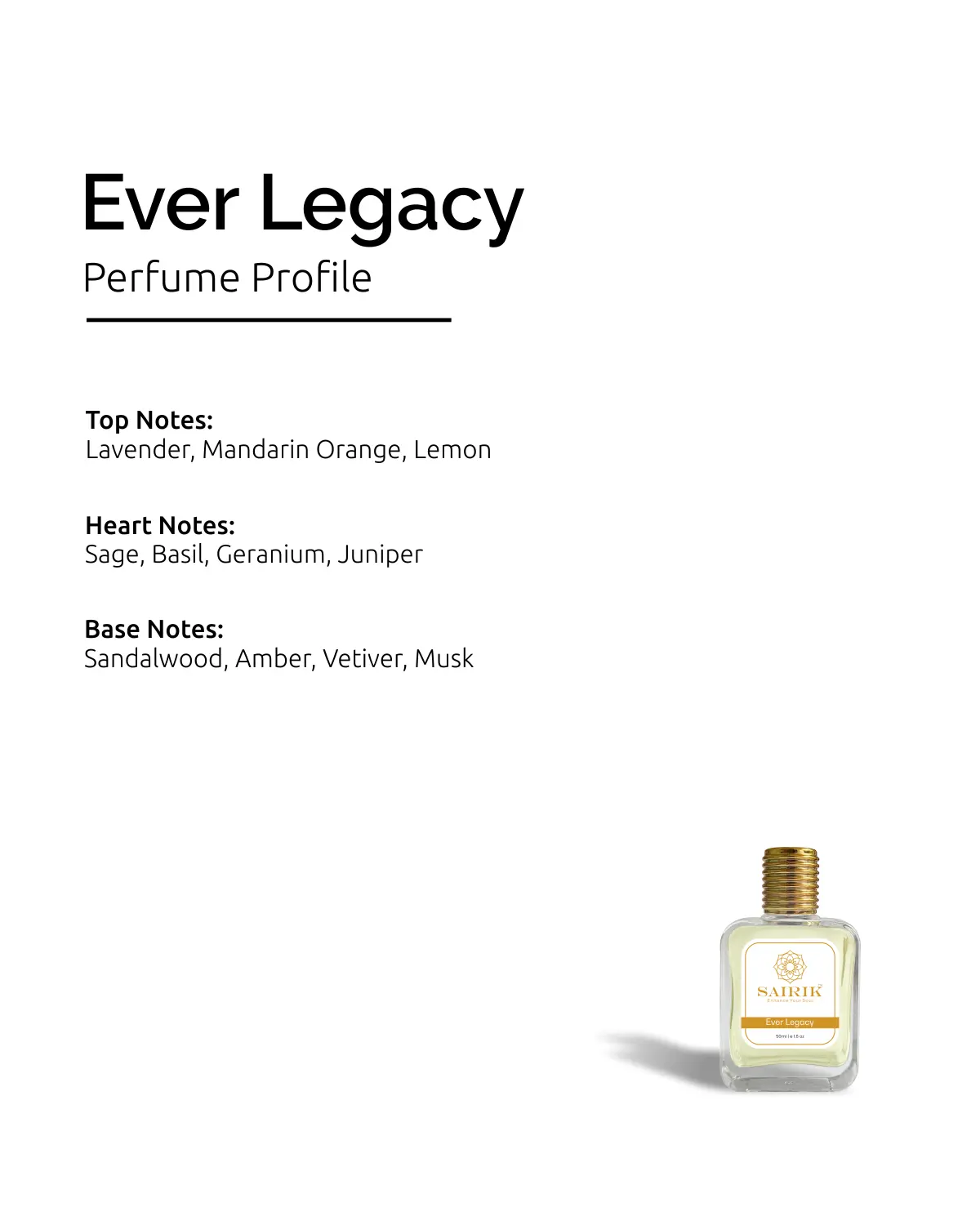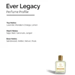 Product Overview: Inspired By Ck Eternity, Ever Legacy Is A Timeless Aromatic-fougere Fragrance That Blends Freshness With Classic Elegance. It Opens With Bright Lavender And Mandarin, Flows Into A Refined Heart Of Sage And Basil, And Settles Into A Warm Base Of Sandalwood And Amber.