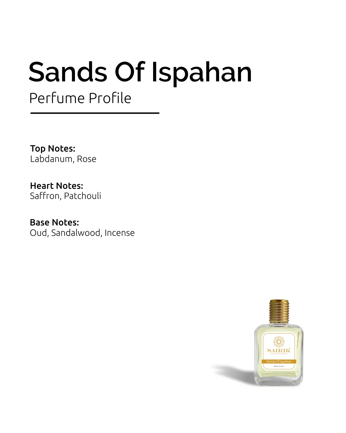 Product Overview: Inspired By Dior Oud Ispahan, Sands Of Ispahan Is A Luxurious Oriental-rose Fragrance With Deep, Smoky Elegance. It Opens With Rich Labdanum And Rose, Moves Through A Heart Of Saffron And Patchouli, And Settles Into A Warm Base Of Oud, Sandalwood, And Incense.